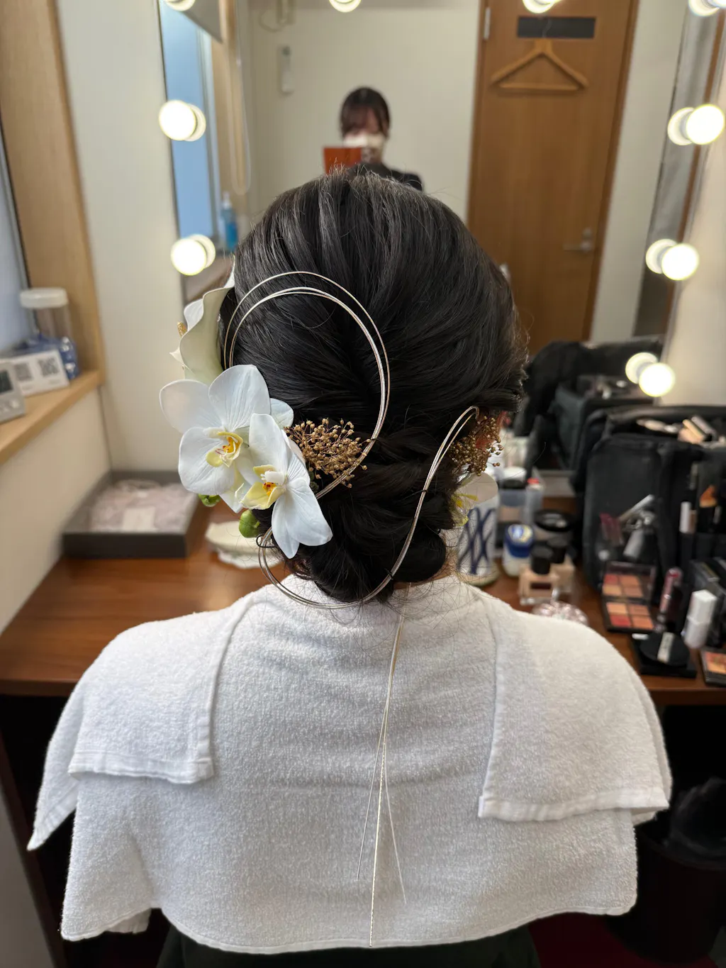 カラーリリーだけでなく、胡蝶蘭やかすみ草の飾りもとても可愛らしく、当日も満足のいくヘアセットにすることができました。ヘアメイクさんにもいい髪飾りですね、と褒めてもらえました!