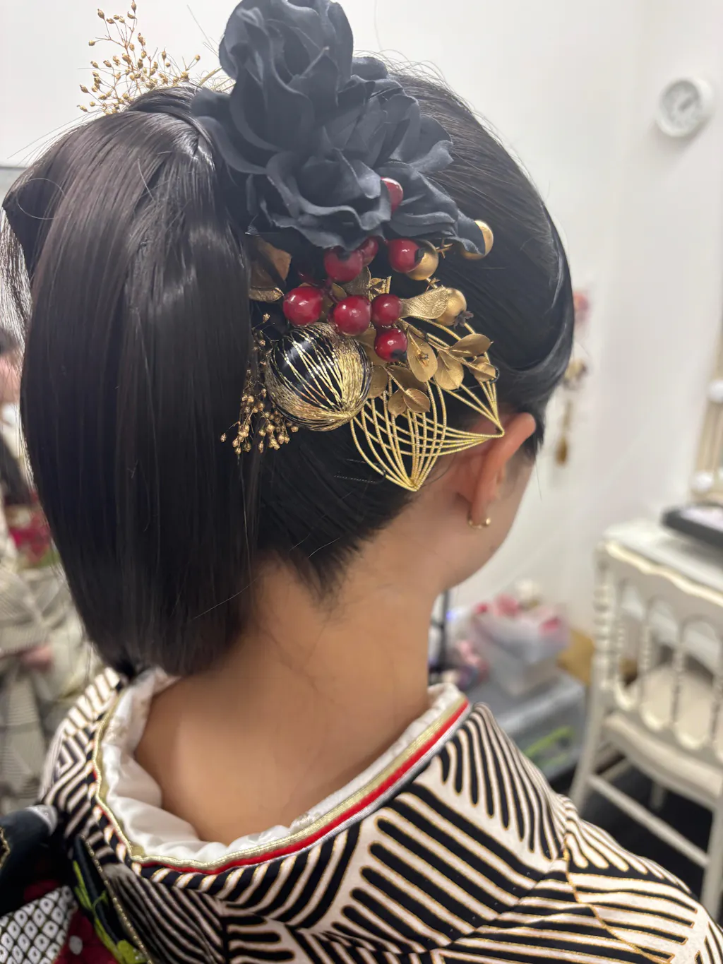 成人式の前撮り用にセミオーダーで髪飾りをお願いしました。前撮りの日程がかなりギリギリだったのですが、前撮り日に間に合うように発送してくださり、とても助かりました。時間が限られている中でも、既存の髪飾りの一部の色を変更したいという相談や要望に丁寧に対応していただき、安心してお任せすることができました。仕上がった髪飾りはとても満足のいくもので、こちらでお願いして本当によかったです!ありがとうございました!