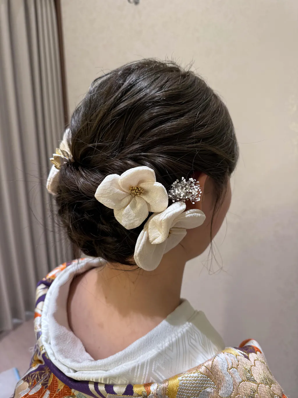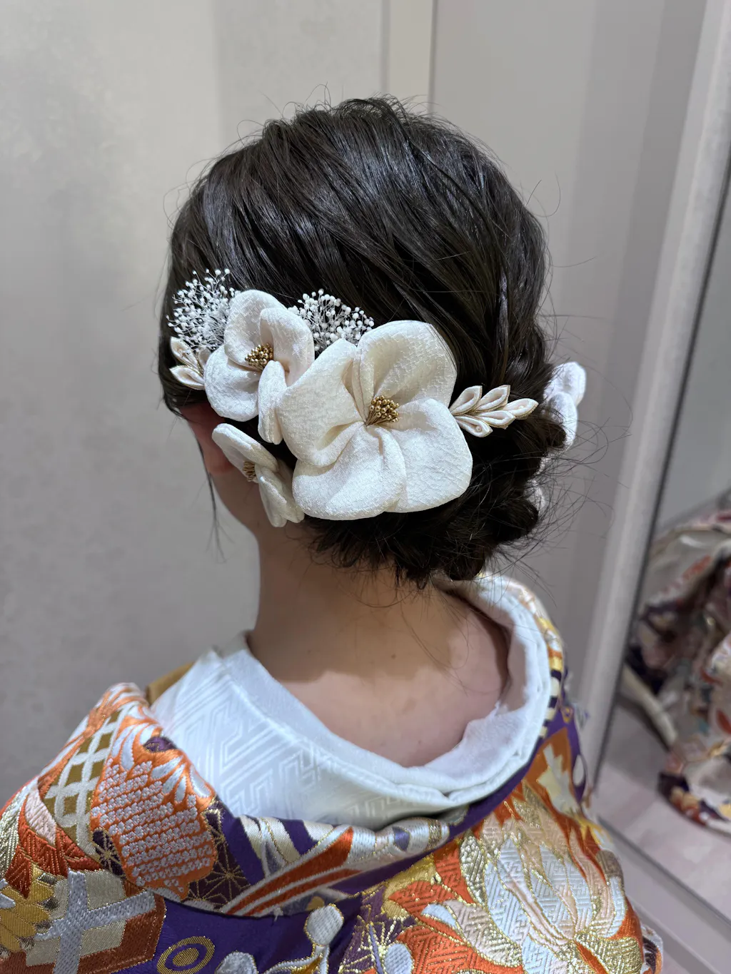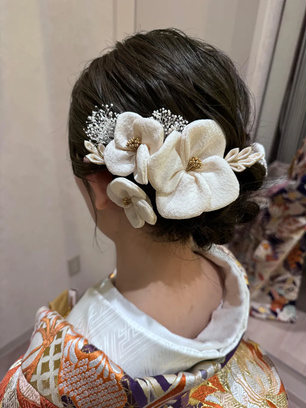 和装の前撮り用に絹花の髪飾りを購入しました。