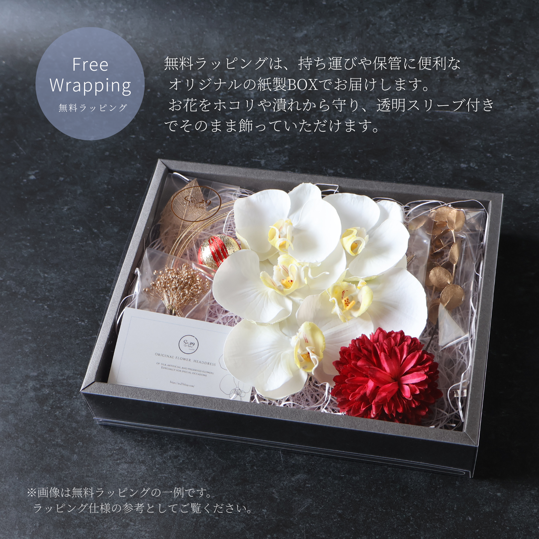 通常ラッピング(free)の場合は、オリジナルの紙製BOX(透明スリーブ付き)でお届けします。
