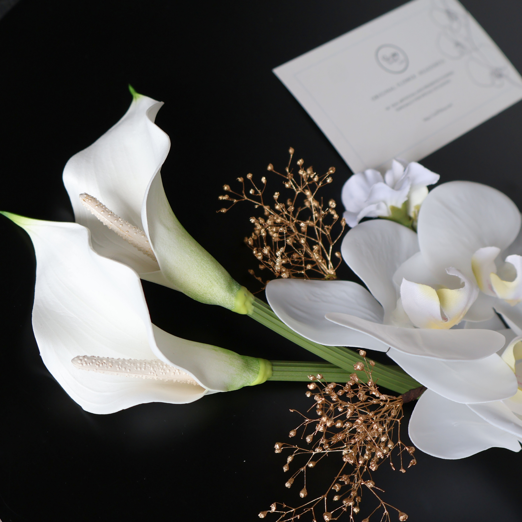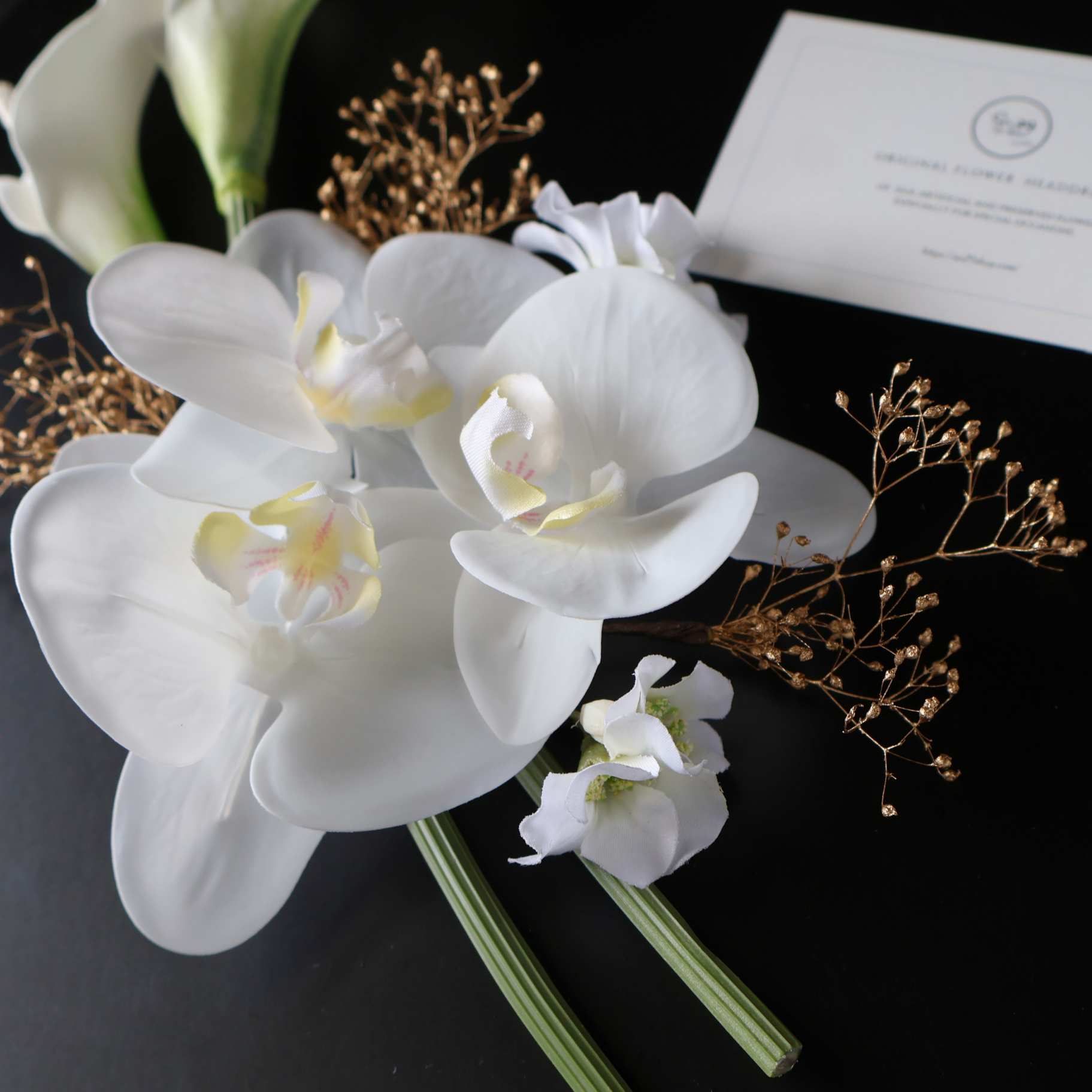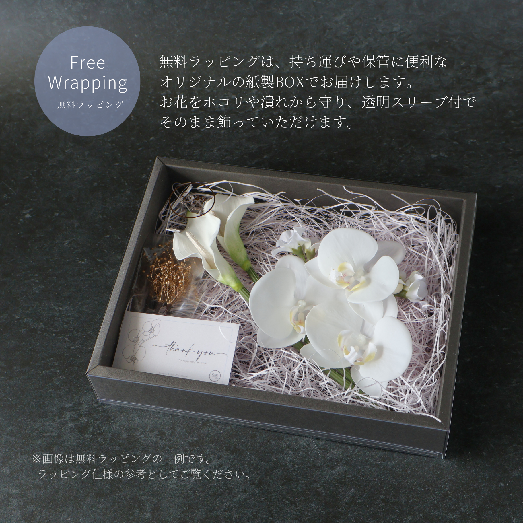 Lサイズの蘭が2輪セットになった商品に、Sサイズを1輪、Mサイズを1輪追加いただくなど、サイズ違いの蘭を追加していただくとバランス良くアレンジいただけます。