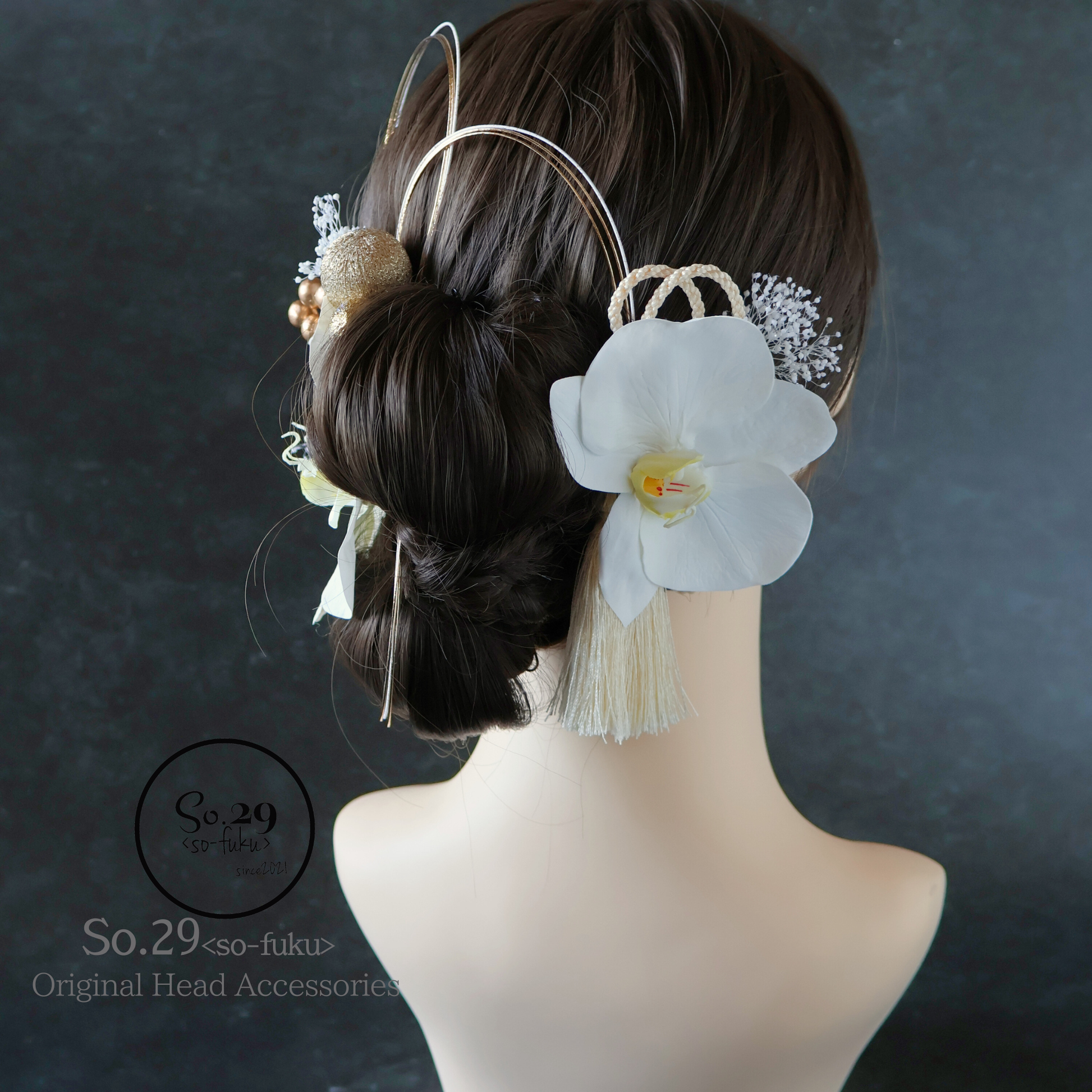 前撮りでのヘアセットに使用し、白無垢に映えてとても可愛かったです!セットの胡蝶蘭はかなりボリュームがあったので追加で購入した小さい胡蝶蘭と組み合わせて使うとバランスが取れてよかったです。購入して大正解でした💯