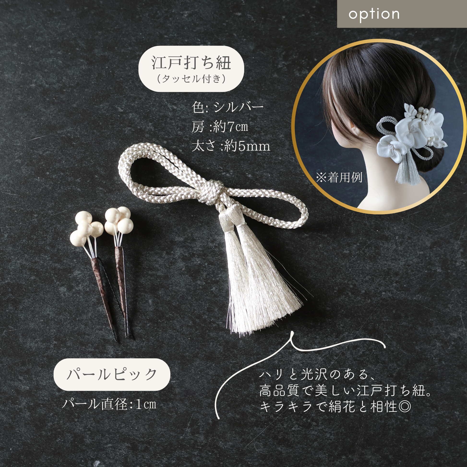 シルバーの江戸打ち紐とパールピックの組み合わせをご用意しております。