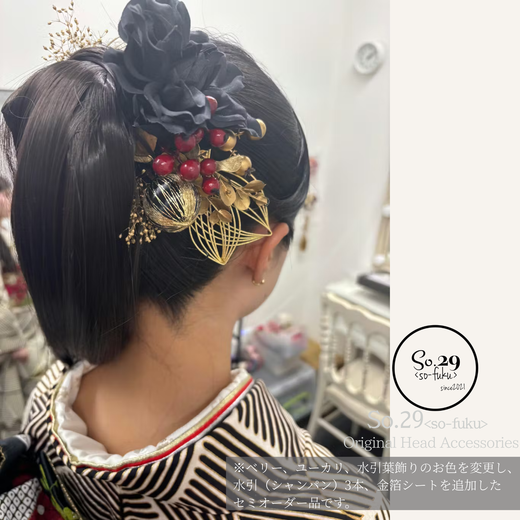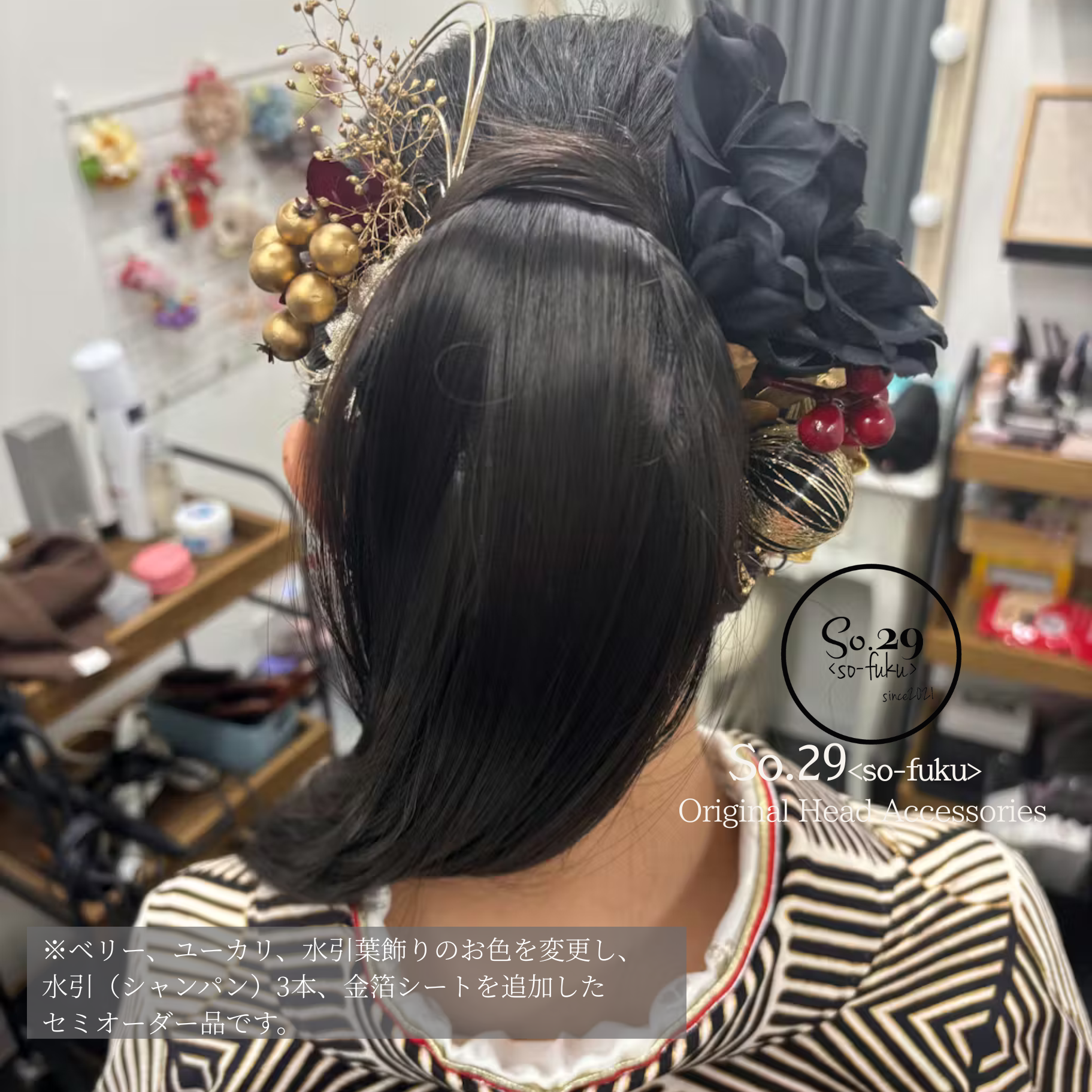 No.227|黒ダリアと南天の実の髪飾り|振袖・袴・成人式・卒業式に