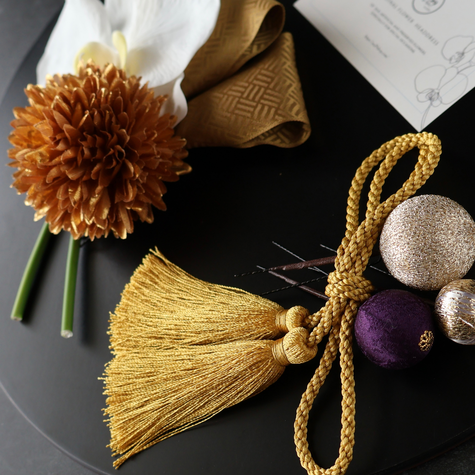 あらかじめモチーフに結んだ状態の水引飾りもご用意しました。