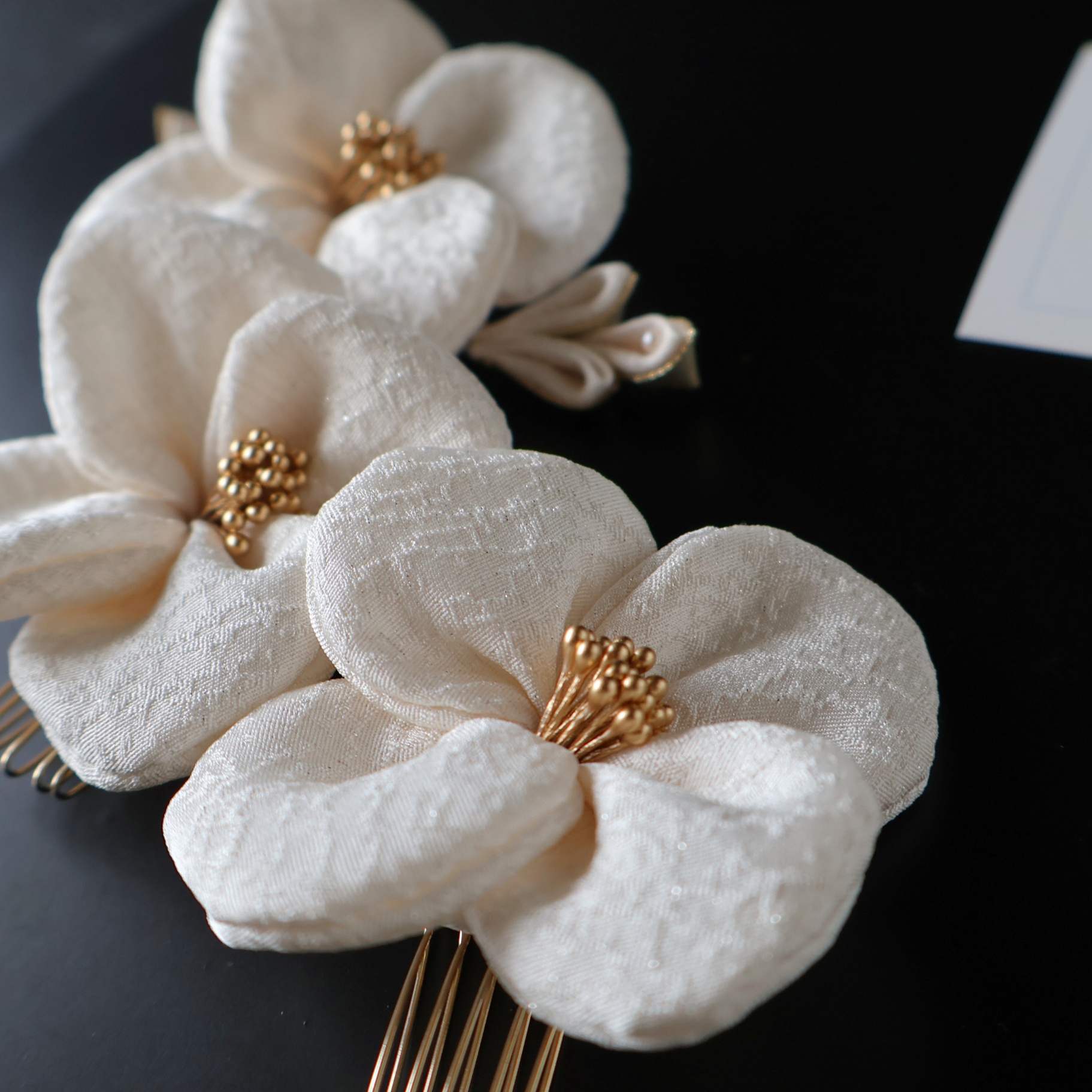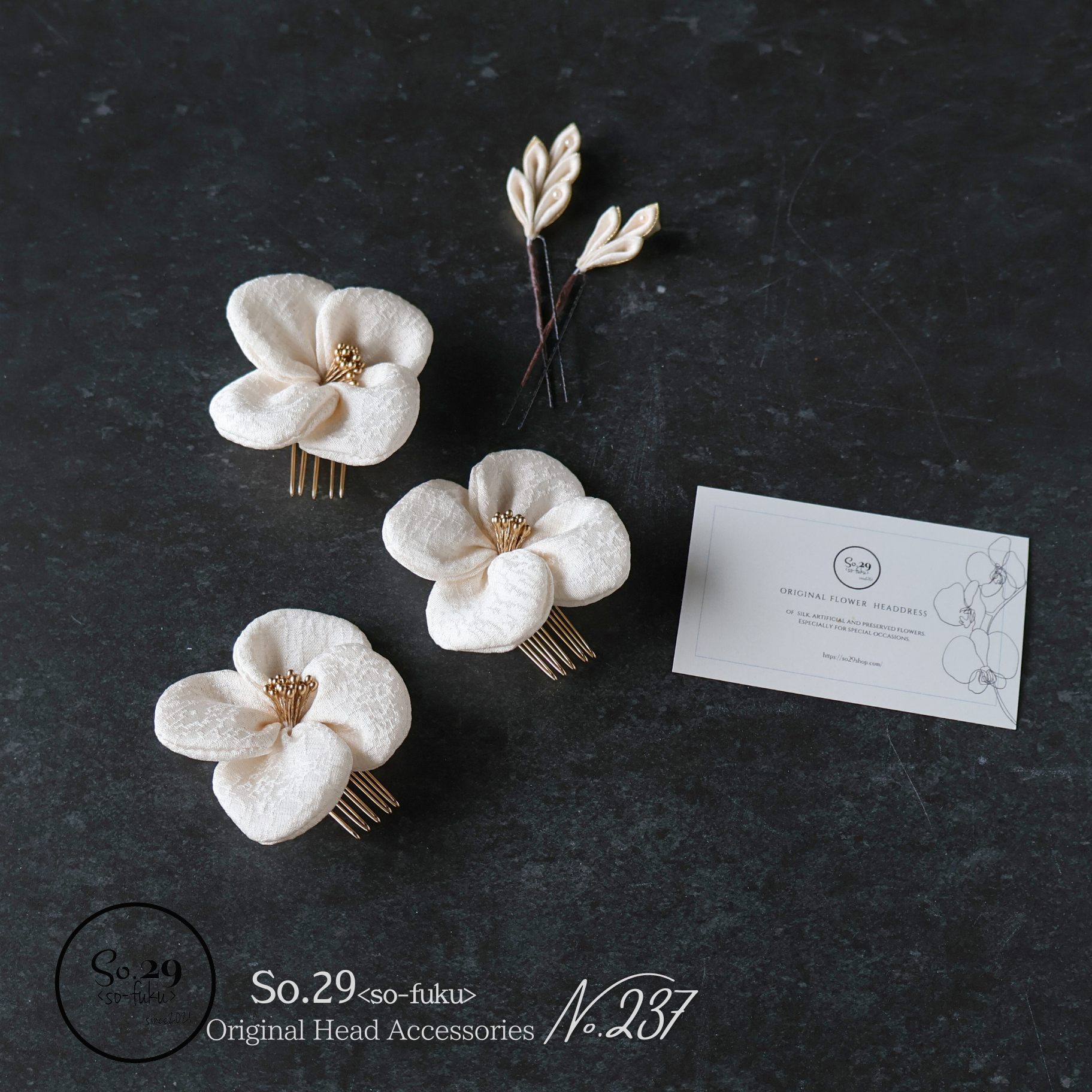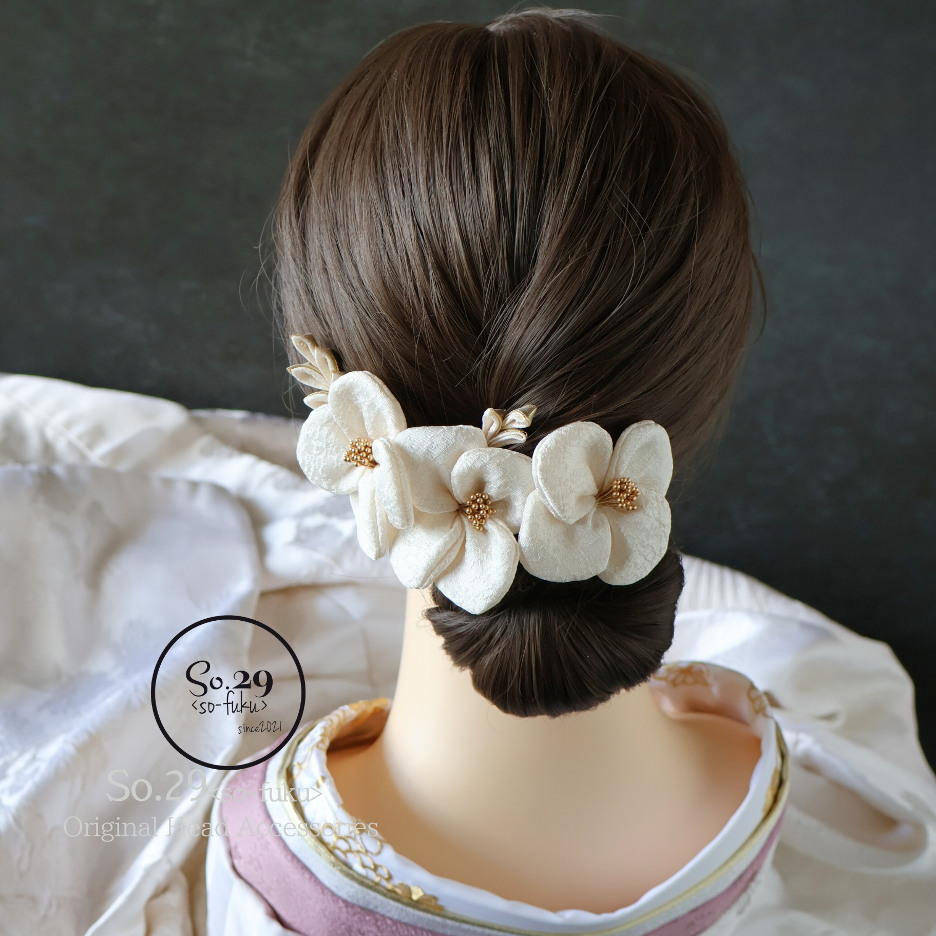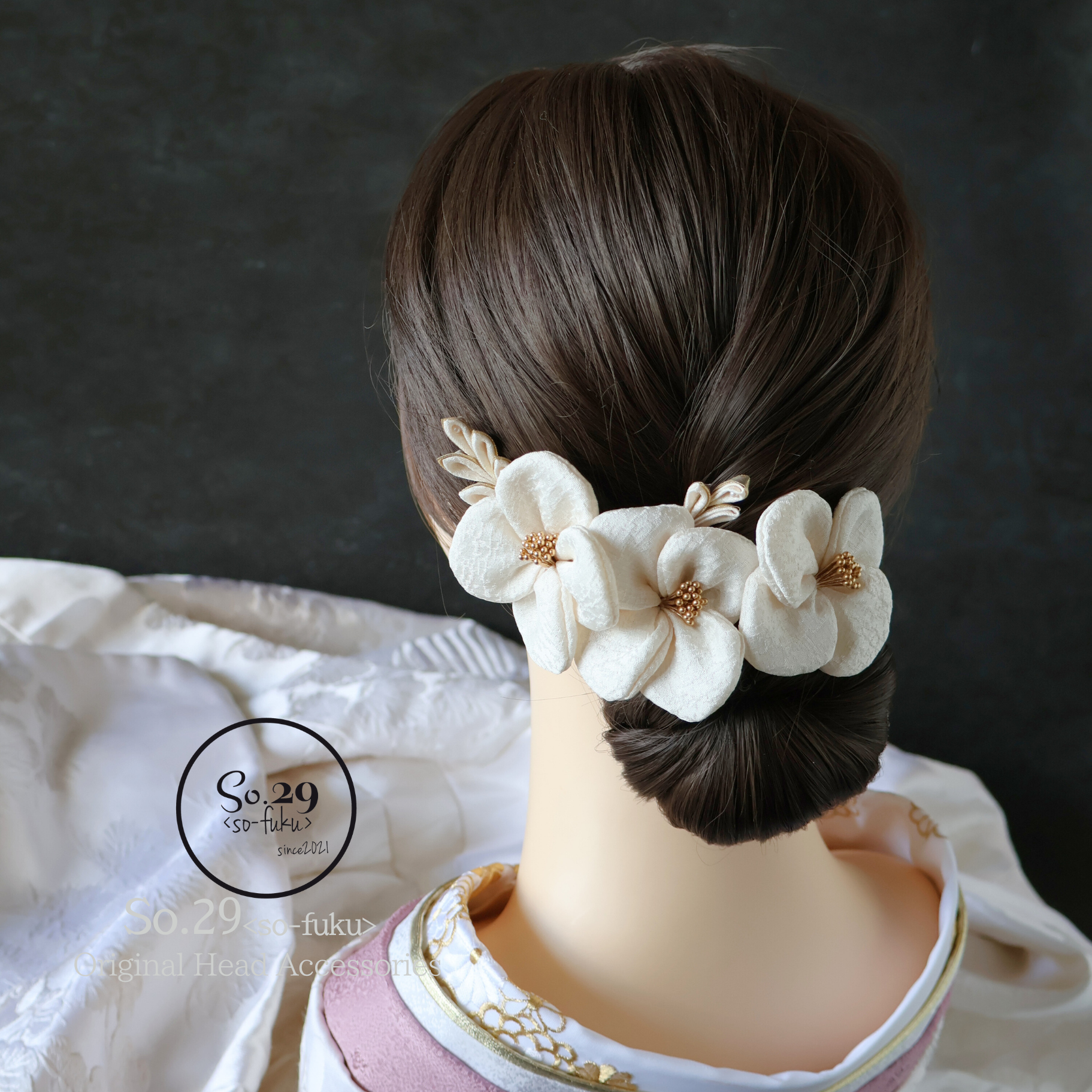 No.237|絹花〈きぬばな〉 正絹の花飾り(オフホワイト/5点セット)|卒園式・七五三・訪問着に