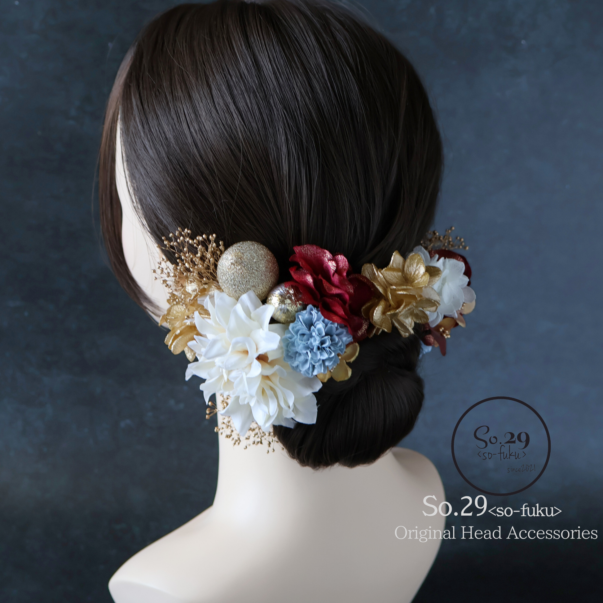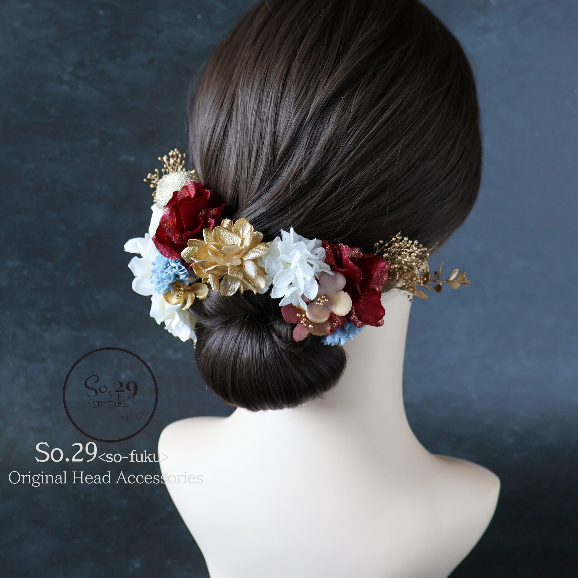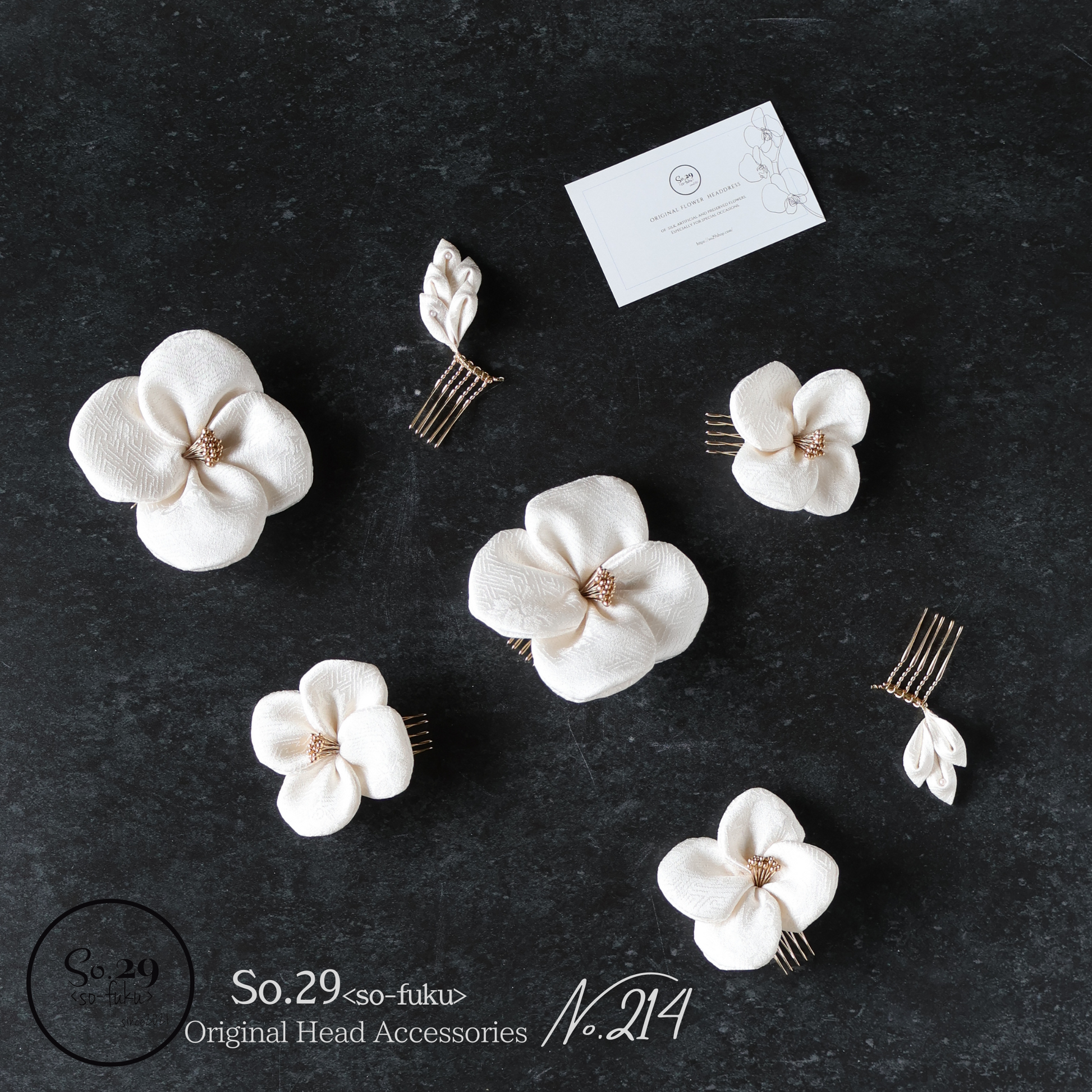 - 髪に飾り付ける際は花部分ではなく、ワイヤー(またはUピン)部分を持って優しくお取り扱いください