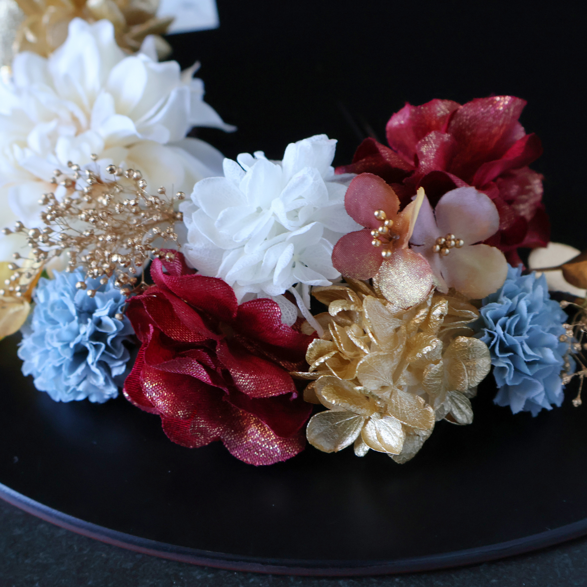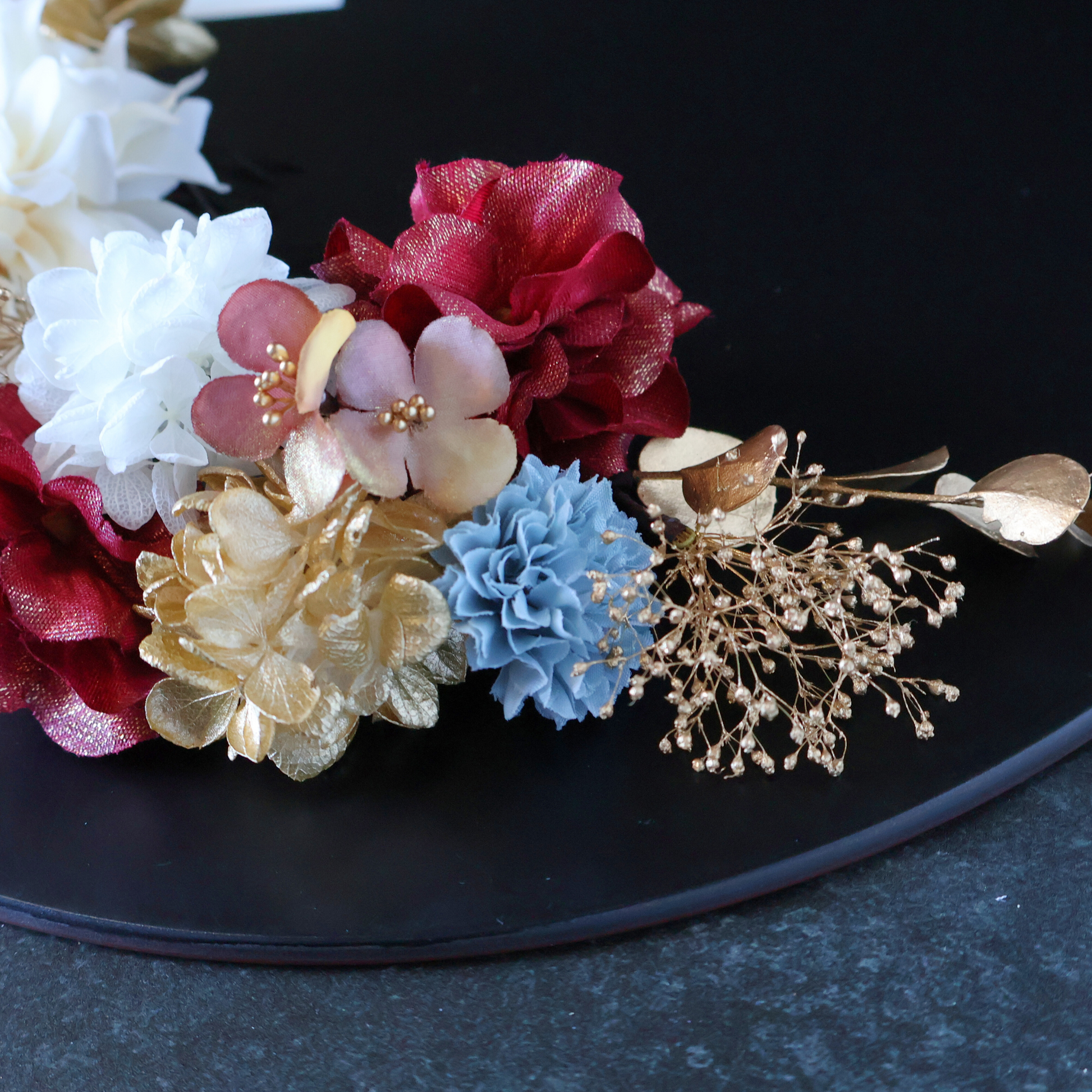 ご衣装の色や柄に合わせてフルオーダーメイド、既製品のセット内容の一部を変更するセミオーダーメイドも承っています。ご使用日、ご予算、組み合わせたい花材などを明記のうえ、LINEよりお問い合わせください。