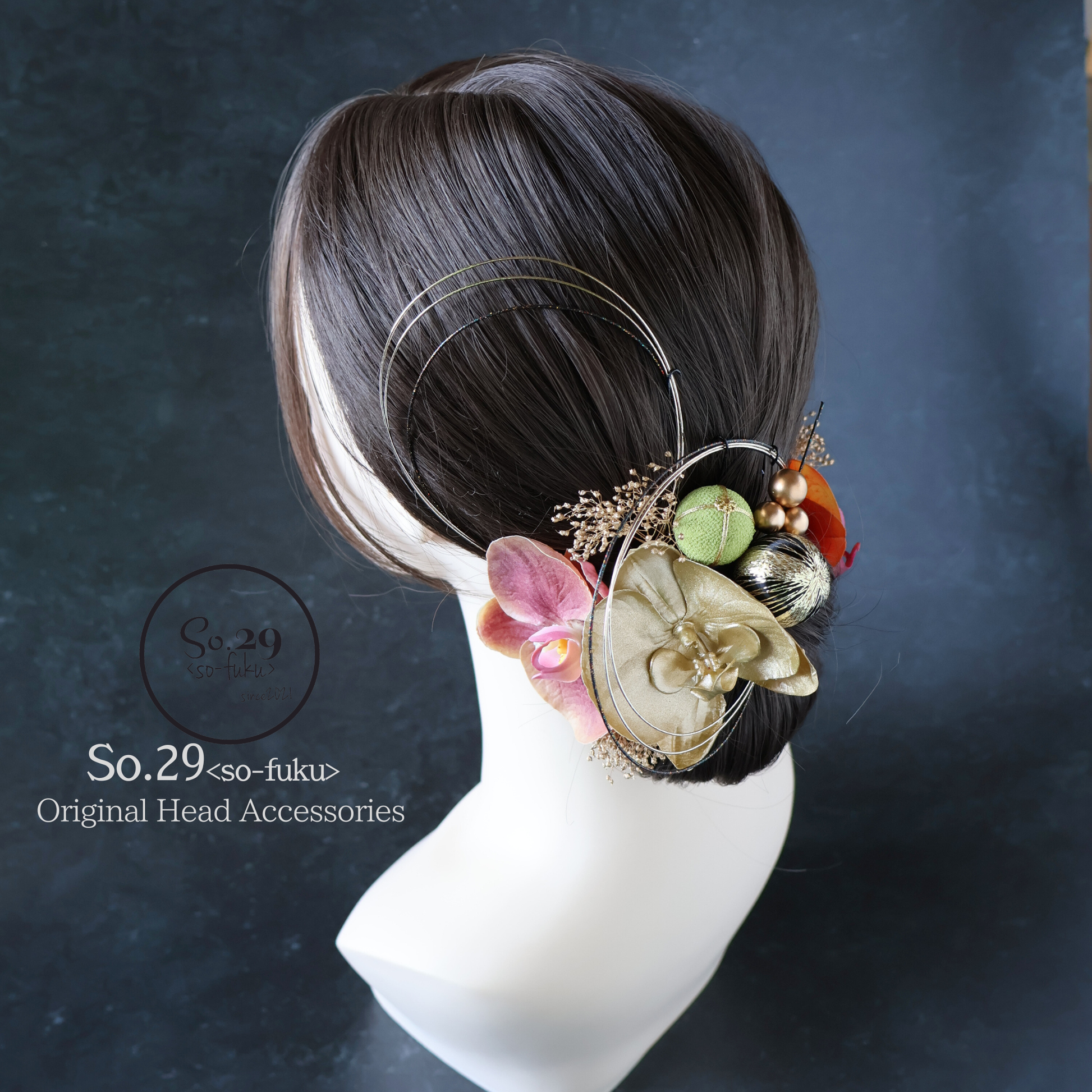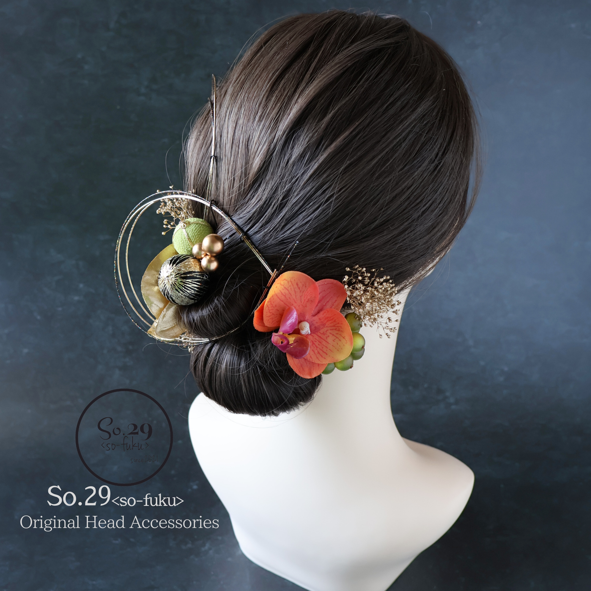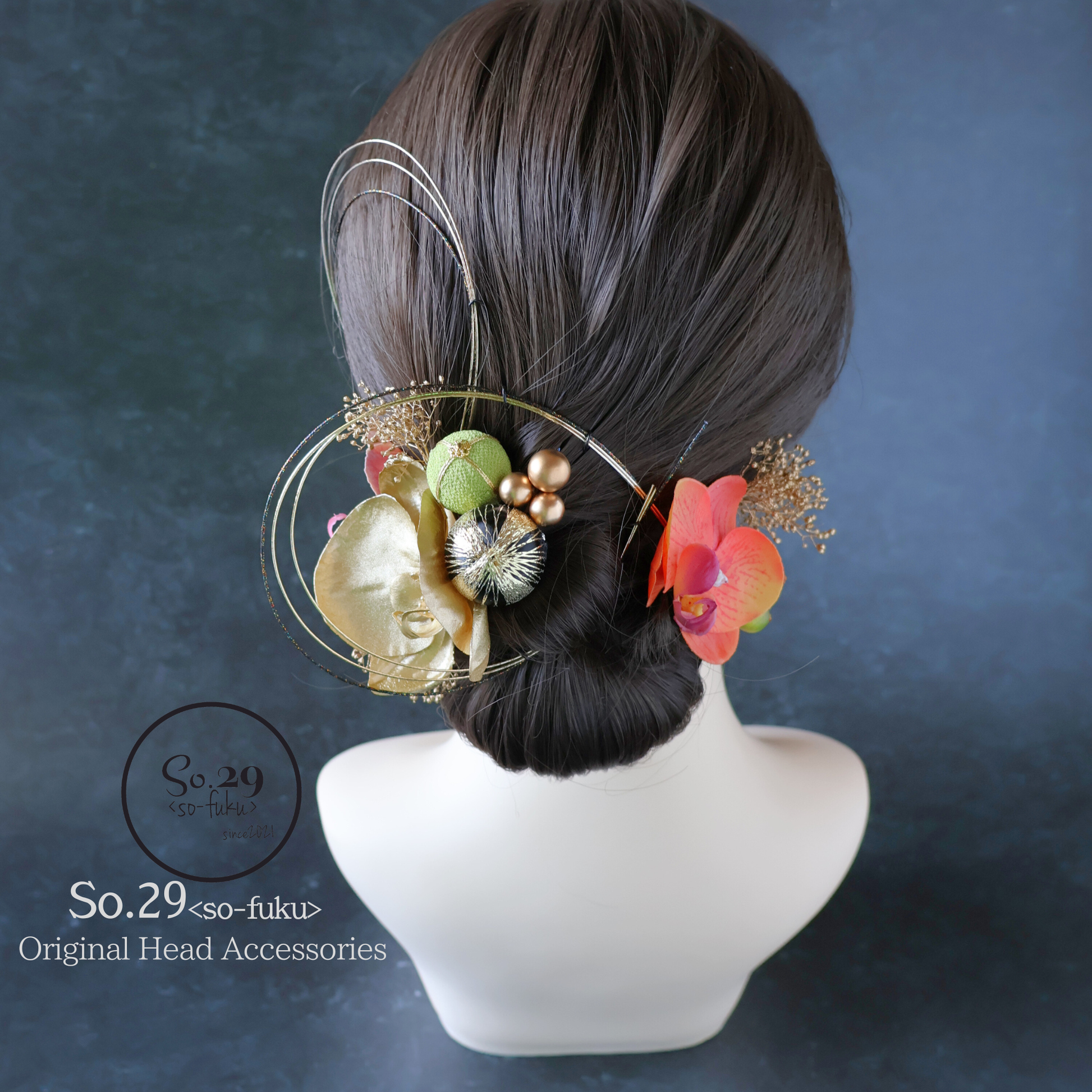 - 一つひとつのパーツにはワイヤーが入っていますので、お花の1cm下辺りから曲げることができます。ヘアスタイルにフィットするよう、お花の角度や向きなどを調整しながら飾り付けてください(玉かんざしなど、曲げられないパーツもあります)