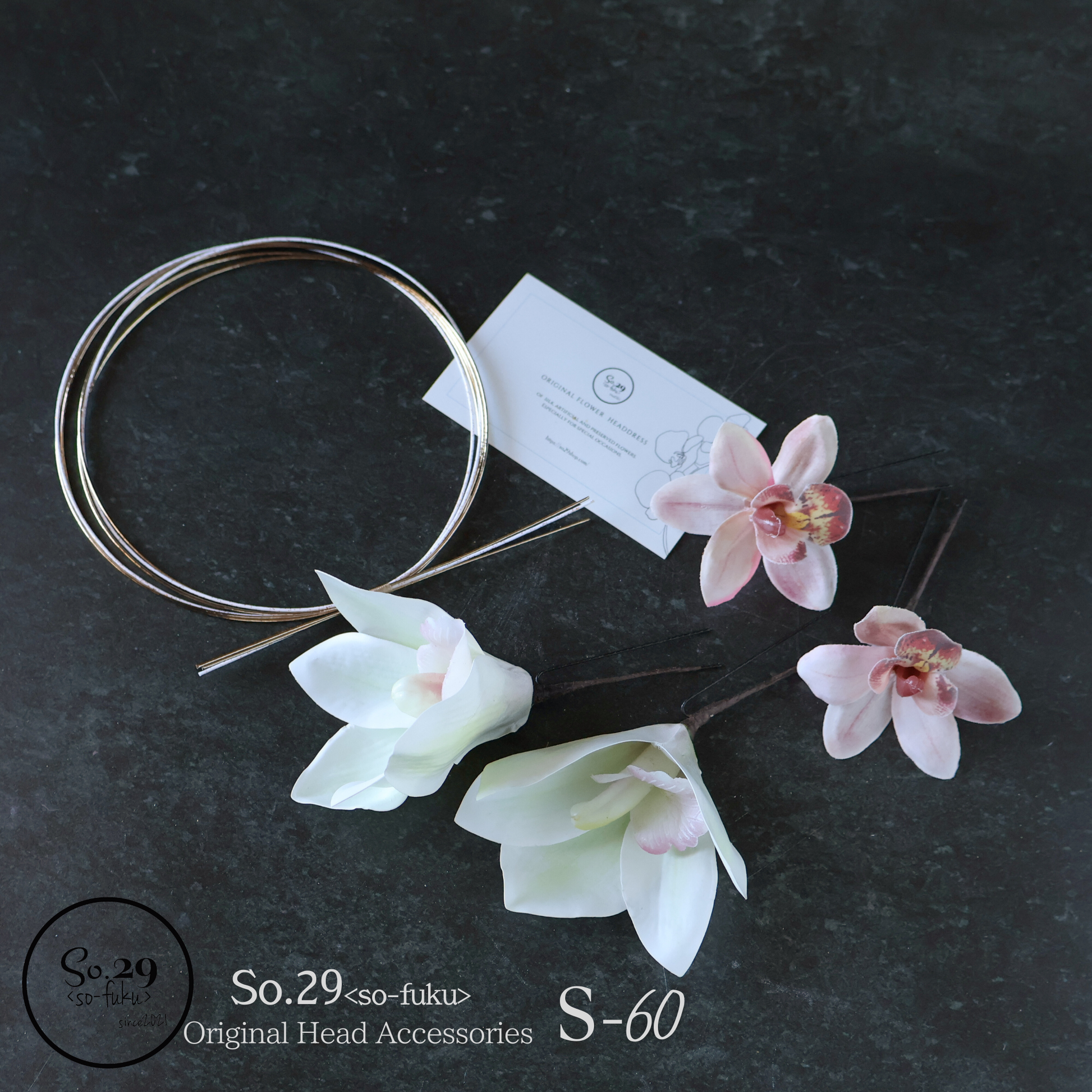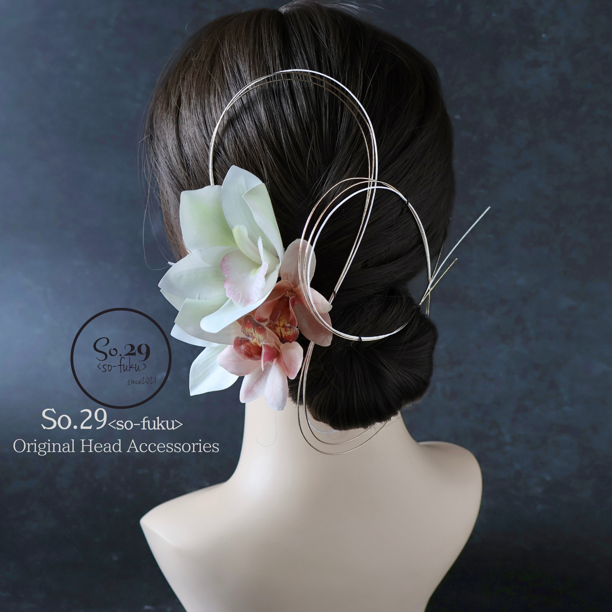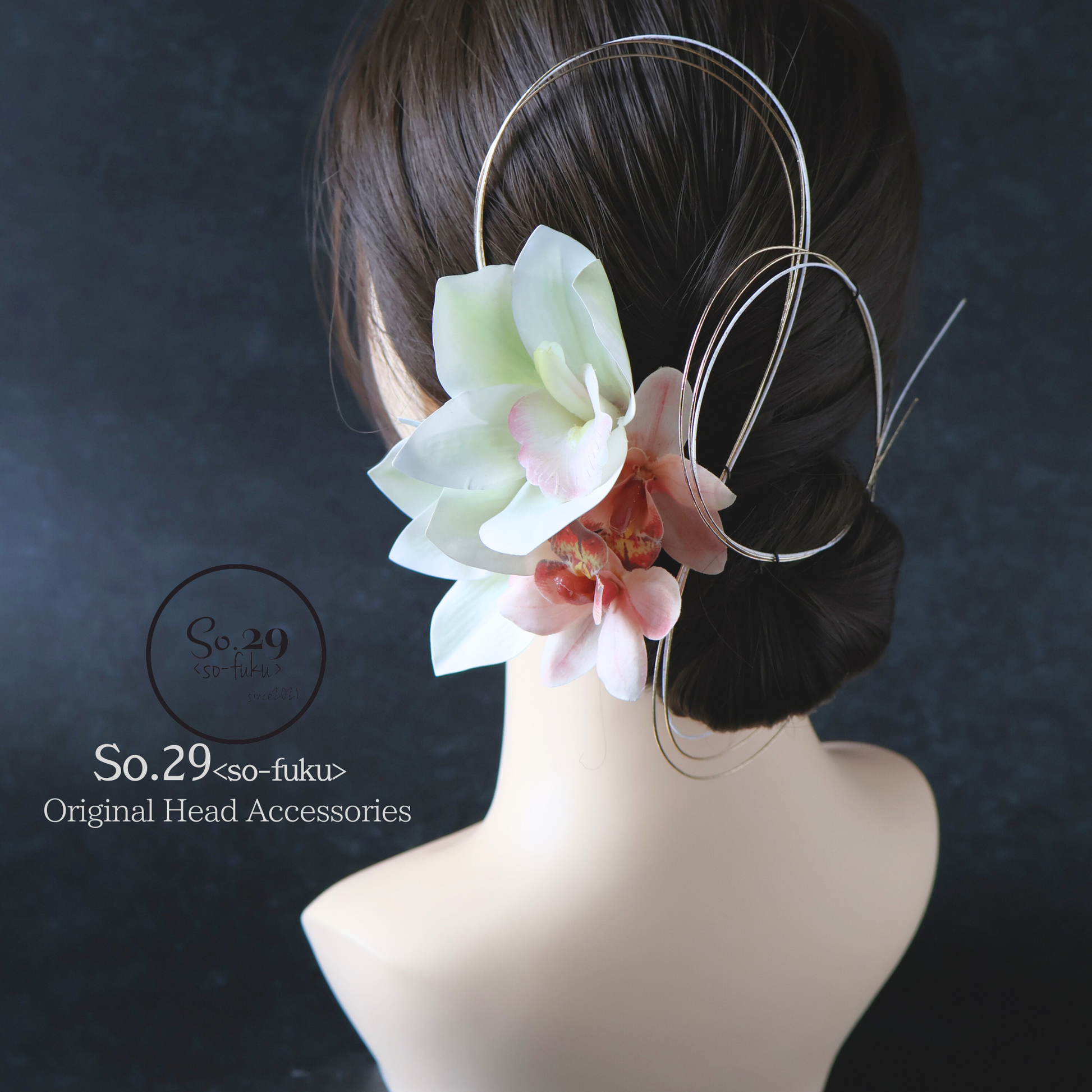 - 髪に飾り付ける際は花部分ではなく、ワイヤー(またはUピン)部分を持って優しくお取り扱いください